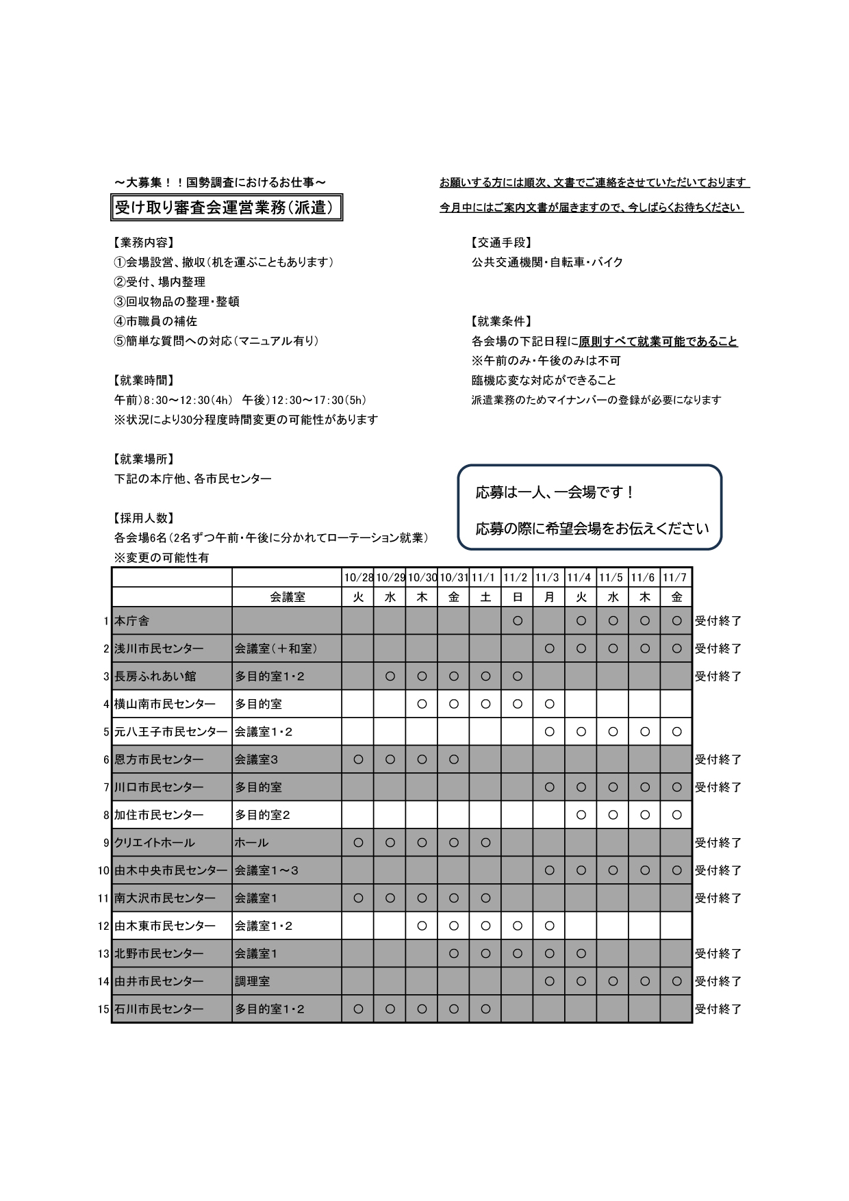 2025年8月25日 / 最終更新日時 : 2025年8月21日 koido 配布班 広報配布欠員状況(8月25日) 広報「はちおうじ」配布のお仕事で欠員が出ている地域の情報です。ダウンロード/表示には下のボタンをクリックして下さい。 広報配布欠員状況 クリックして下さい