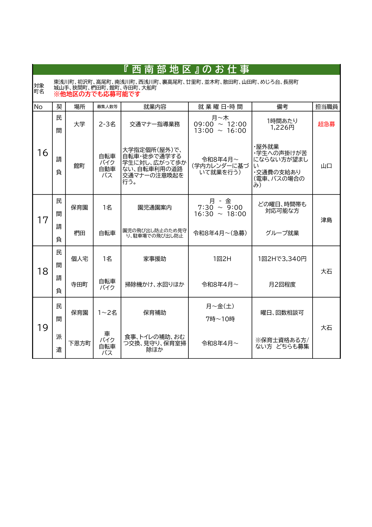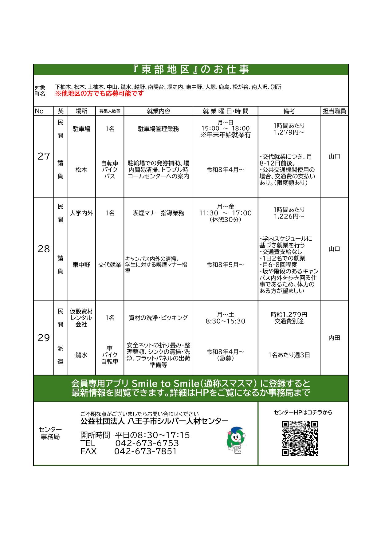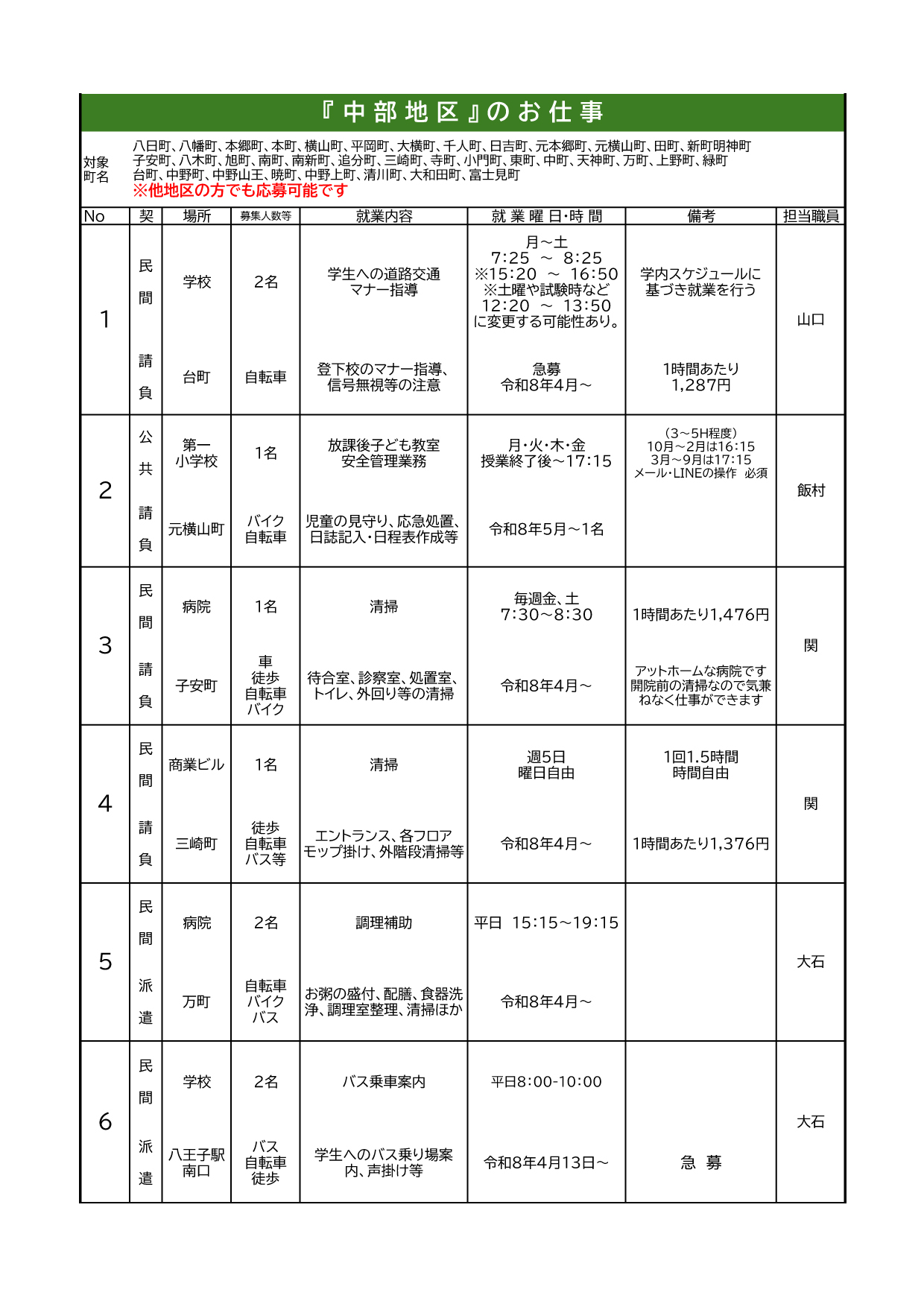 広報「はちおうじ」配布のお仕事で欠員が出ている地域の情報です。ダウンロード/表示には下のボタンをクリックして下さい。