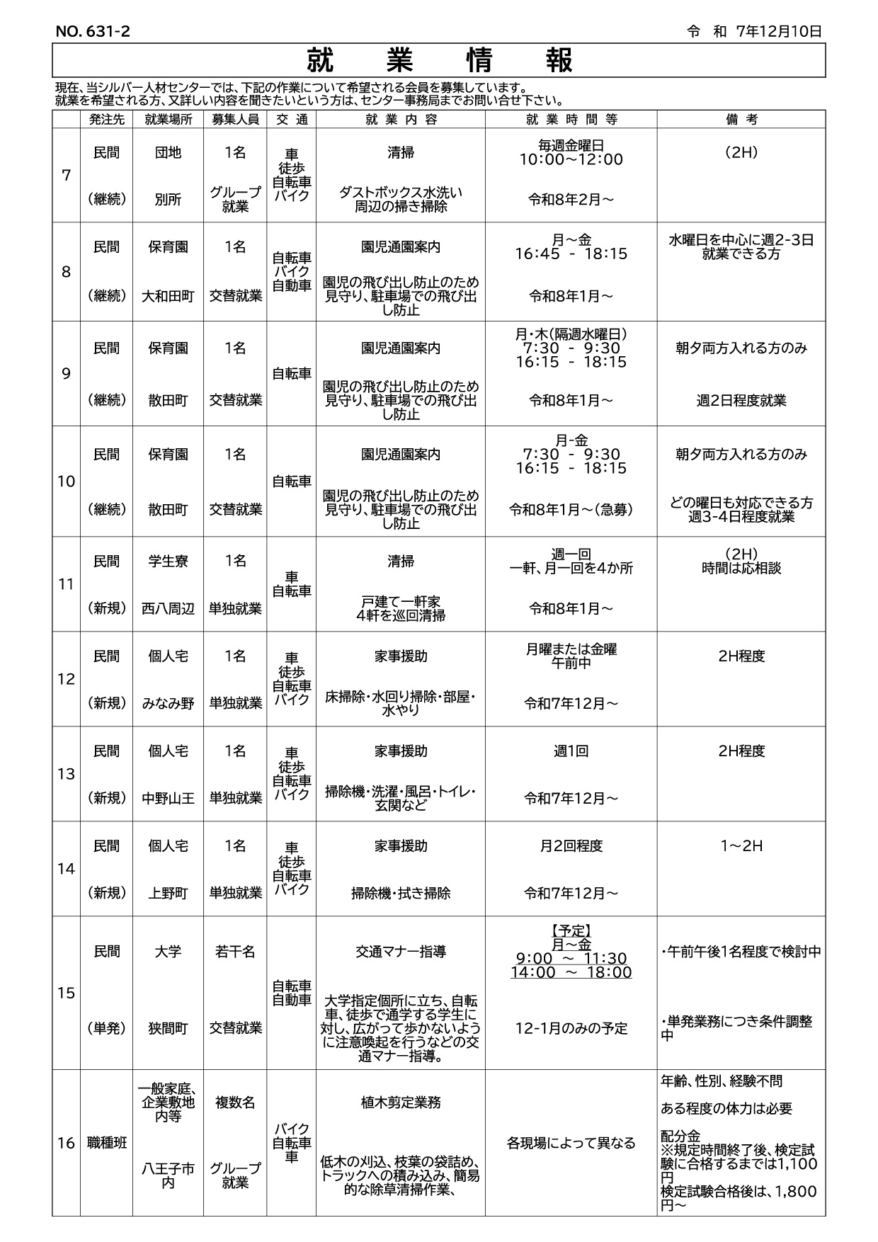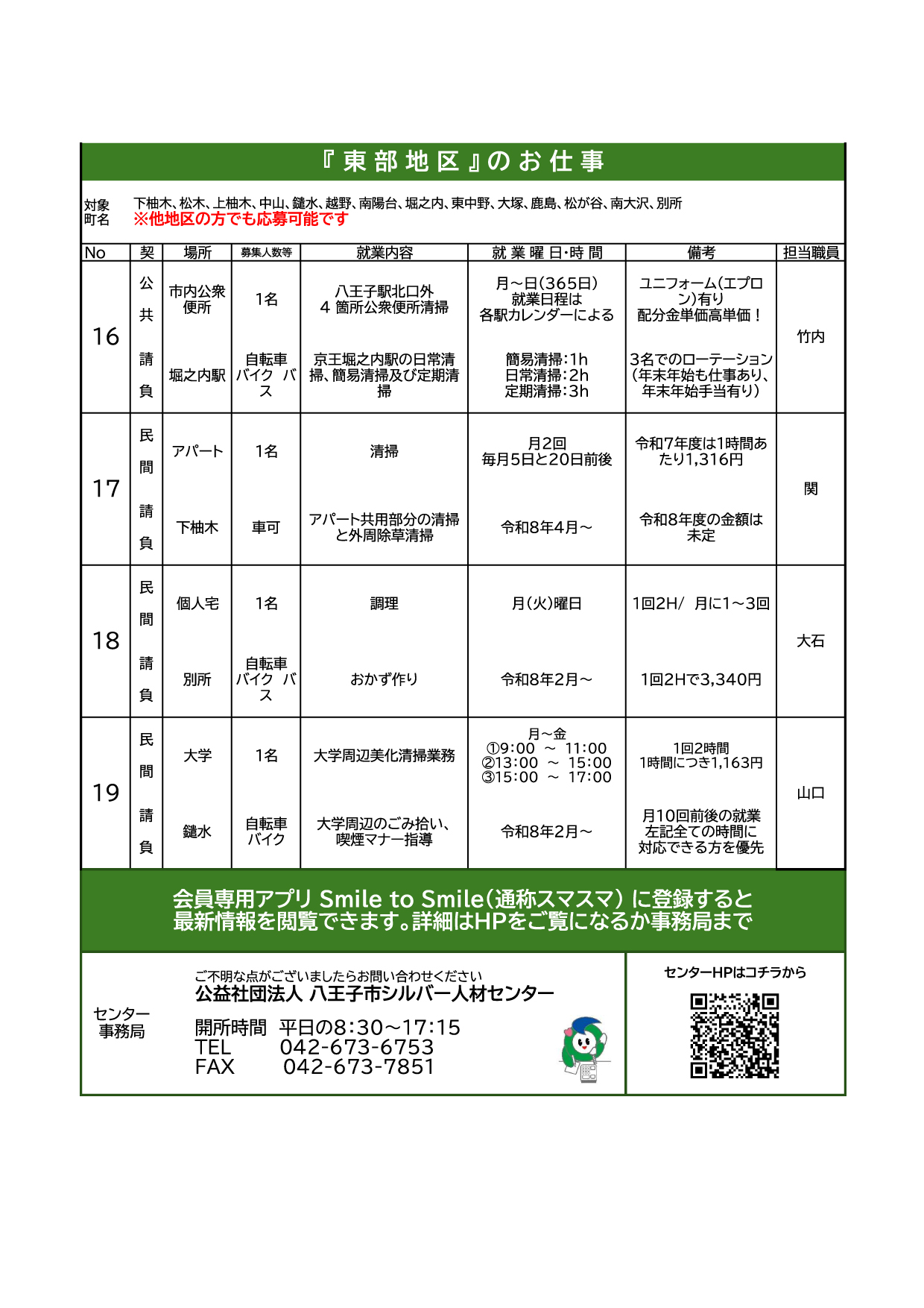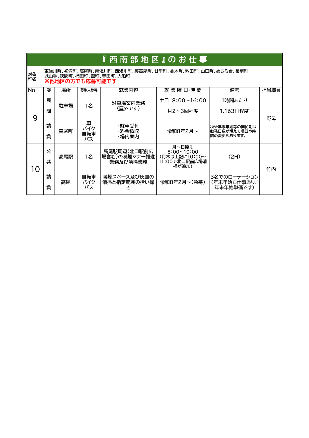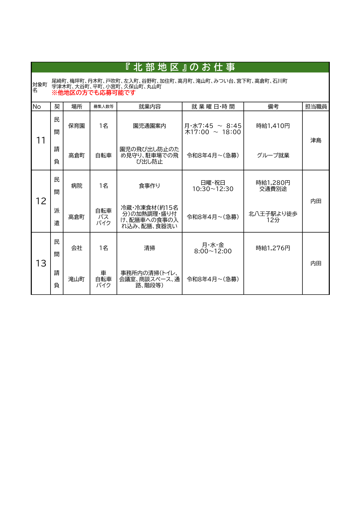 広報「はちおうじ」配布のお仕事で欠員が出ている地域の情報です。ダウンロード/表示には下のボタンをクリックして下さい。